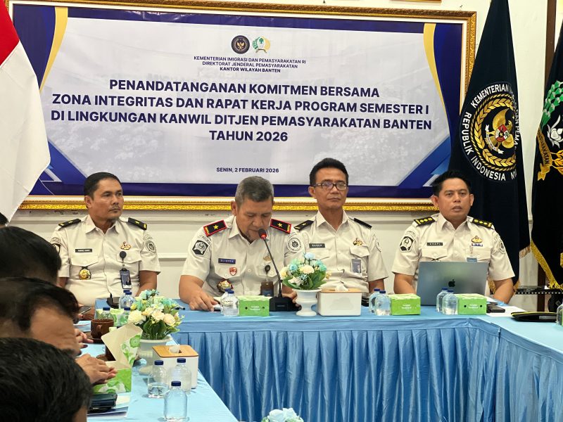 Komitmen tersebut kembali ditegaskan melalui Penandatanganan Komitmen Pembangunan Zona Integritas yang dilaksanakan di Lapangan Upacara Kantor Wilayah Direktorat Jenderal Pemasyarakatan (Ditjenpas) Banten, Senin (2/2/2026).