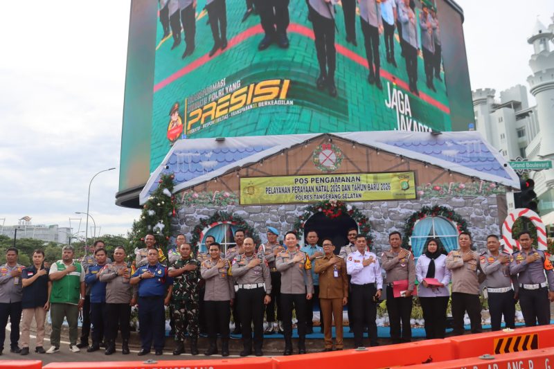 TANGERANG SELATAN, katasatu.idDalam rangka memastikan kesiapan pengamanan perayaan Natal 2025 dan Tahun Baru 2026, Kapolres Tangerang Selatan AKBP Victor D.H. Inkiriwang, mendampingi langsung Tim Penilai dari Polda Metro Jaya dalam kegiatan penilaian Pos Pengamanan (Pos Pam) Nataru di Traffic Light (TL) Epicon, wilayah hukum Polsek Pagedangan, Jumat (26/12/2025).