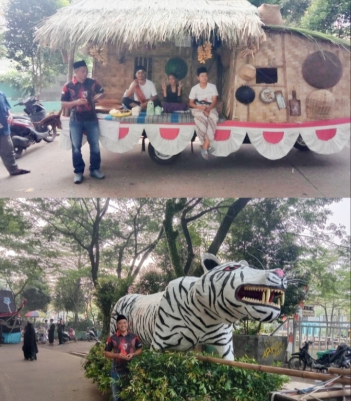 Yang tak kalah seru warga RW 03 Rawa Macek membuat dongdang miniatur harimau yang terbuat dari bahan kertas semen dan karung.